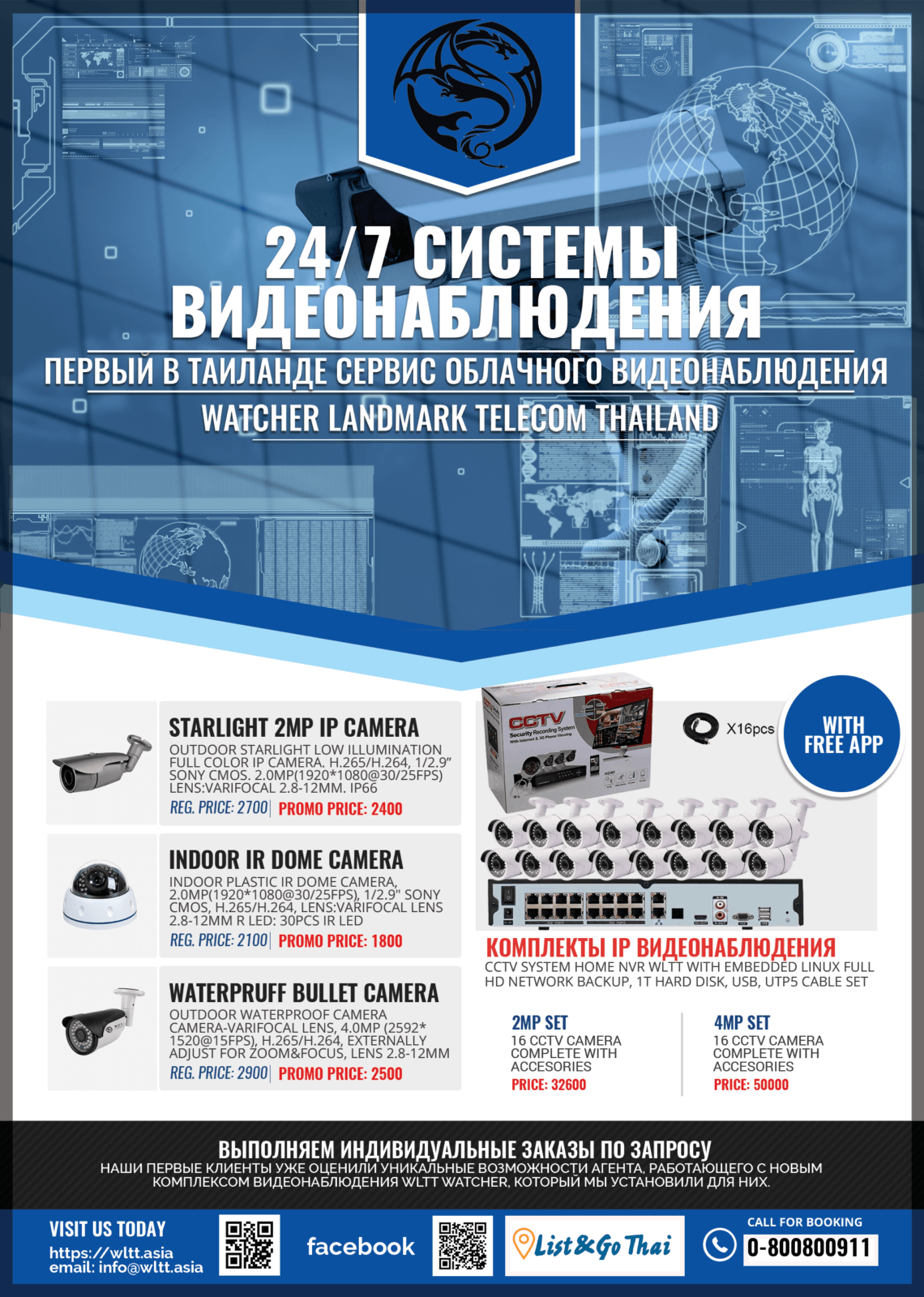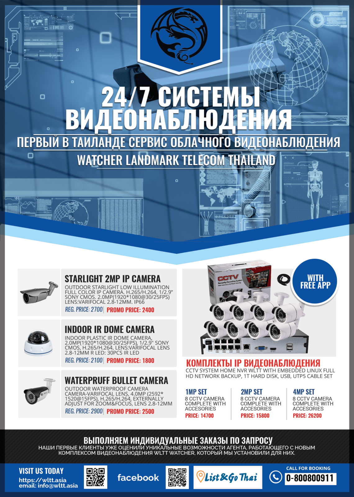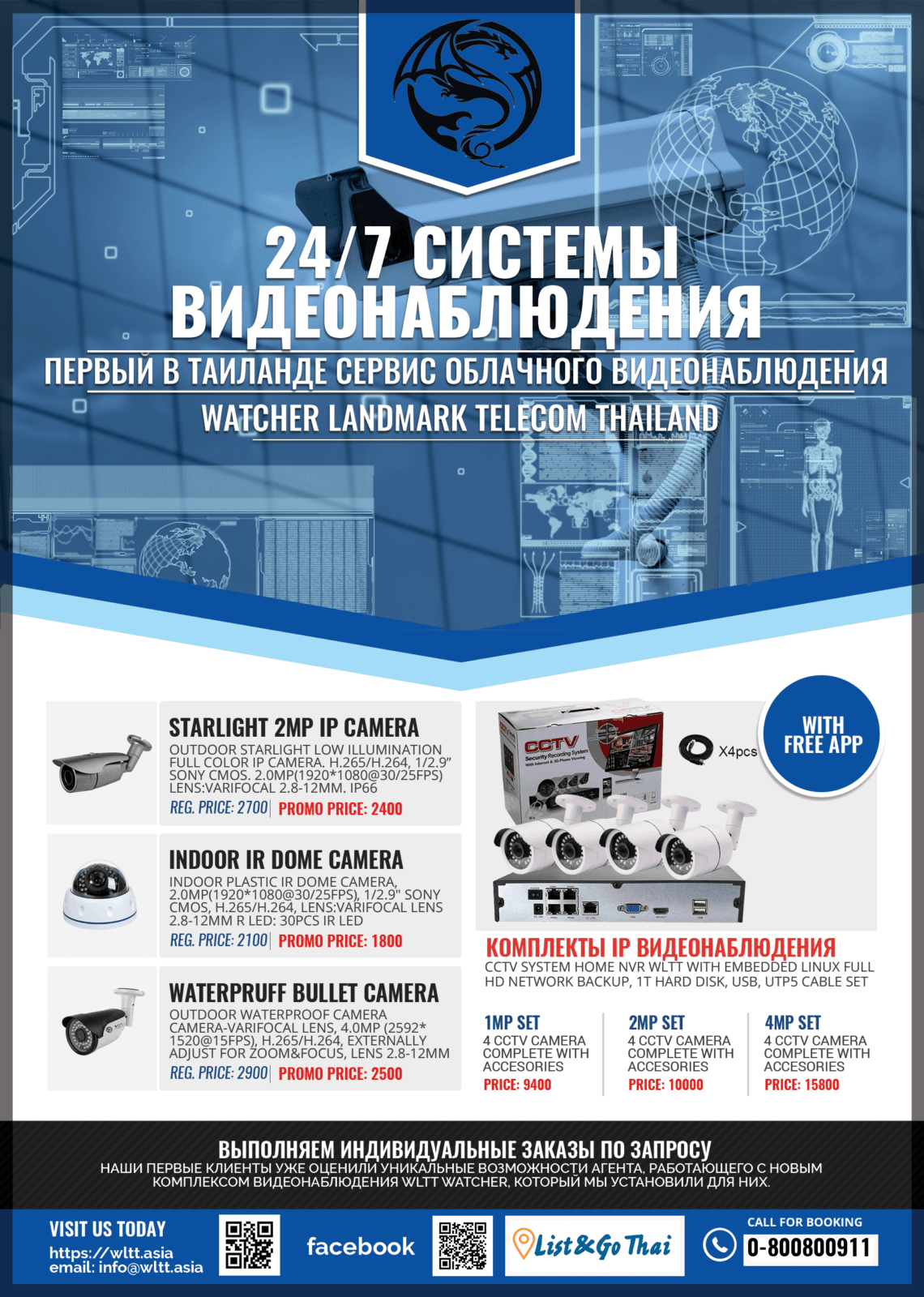 Комплекты видео наблюдения в Таиланде для дома и малого бизнеса. В состав комплектов входит IP камеры, сетевой видео регистратор, кабель для подключения камер. Все камеры и с поддержкой технологии PoE, т.е. позволяют передавать видео с камер, а так же обеспечивать питанием камеры. Это существенно снижает расходы на установку и сопровождение системы видео наблюдения.